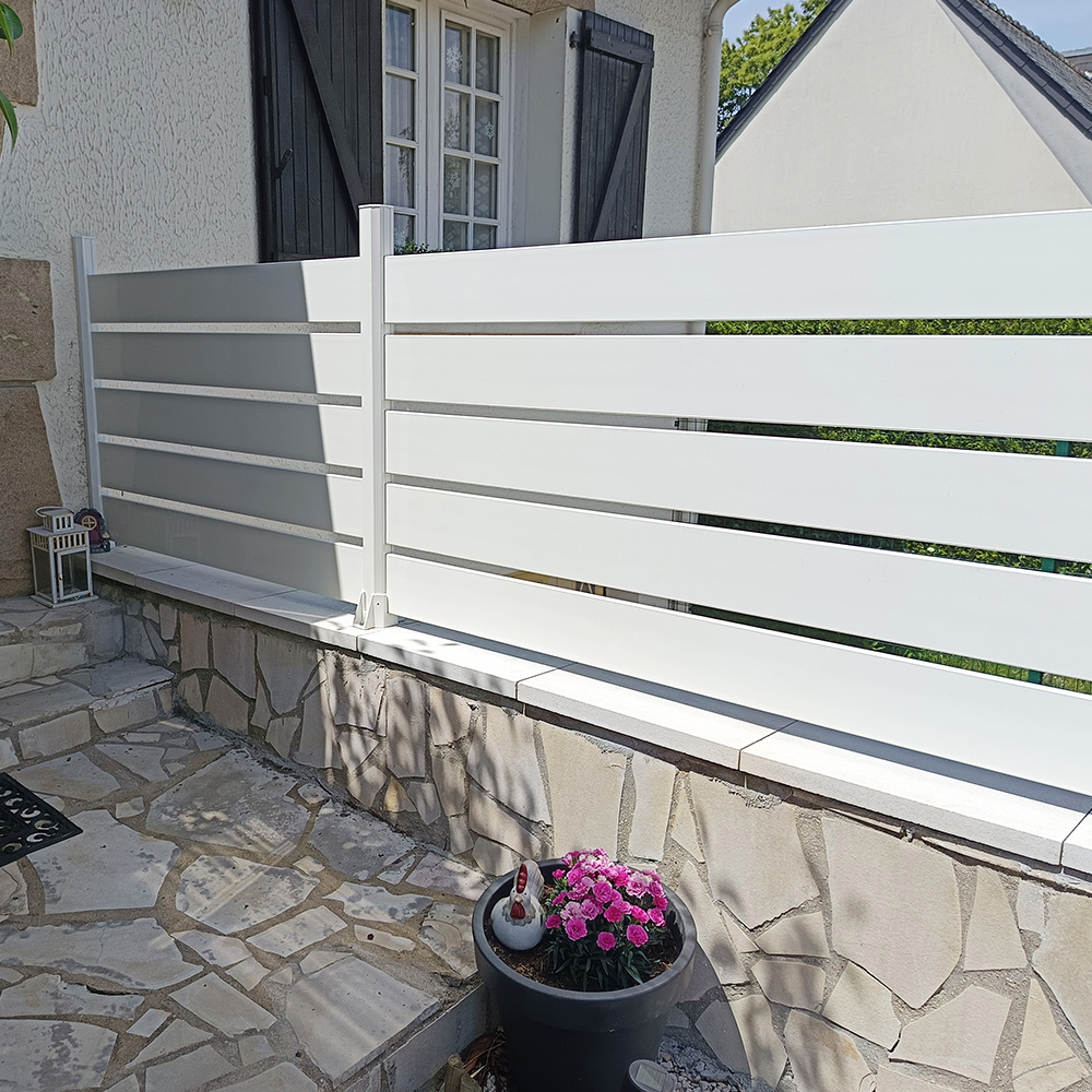 La clôture ranch panneau ajouré, comme son nom l’indique, des lames espacées. Cela donne un effet léger et agréable au visuel, tout en protégeant votre habitation. L’air circulant mieux avec des panneaux ajourés, cela renforce la stabilité de la clôture et sa résistance avec une prise au vent moins importante.