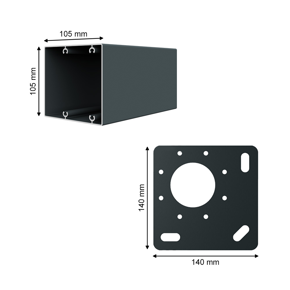 • Supports de fixation : 3 platines de fixation façade – 50 x 160 mm + 2 platines de fixation au sol – 140 x 140 m