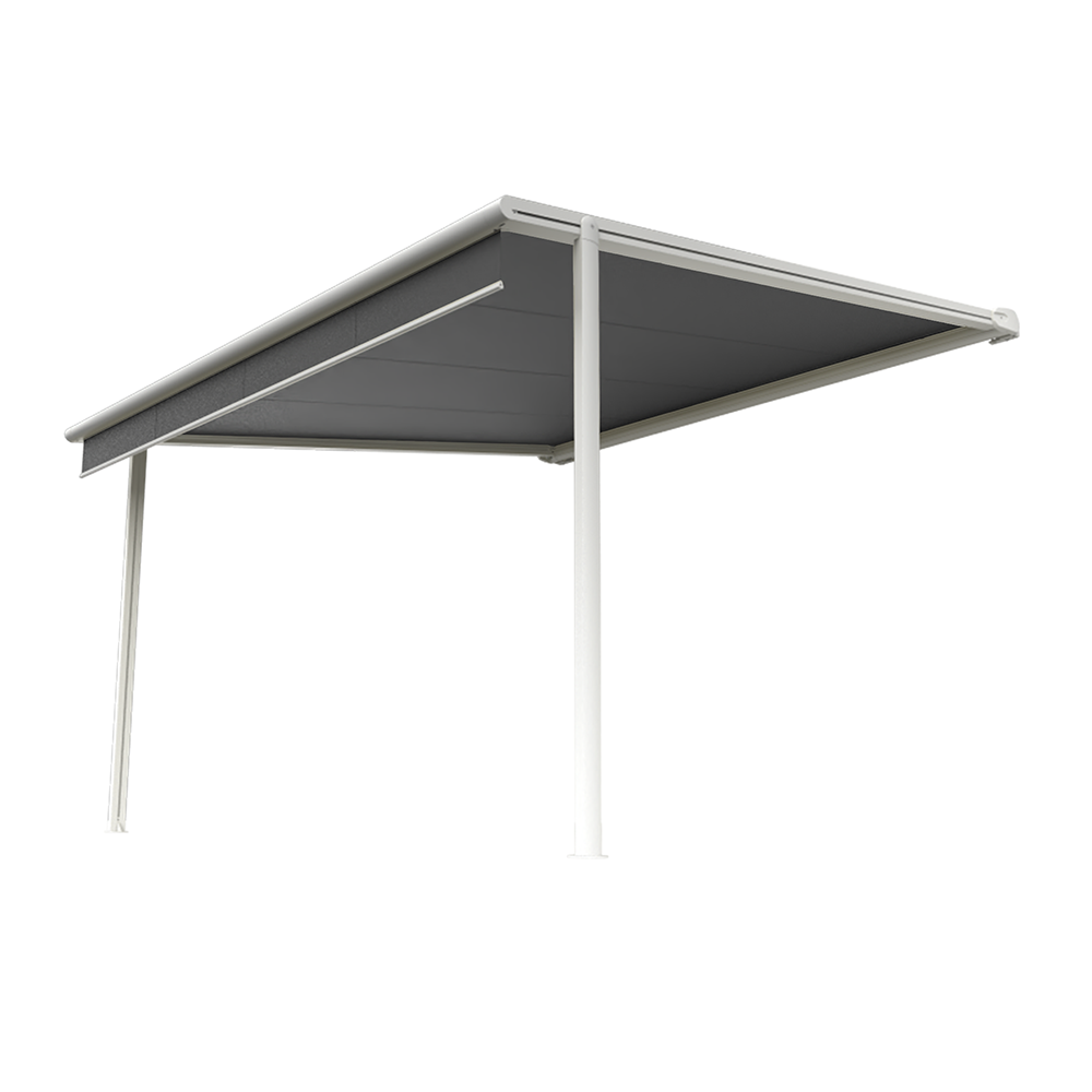 Les poteaux peuvent être positionnés à l'extrémité ou être déportés jusqu'à 1.00 m maximum de l'avancée totale, ce qui assure une adaptation optimale à votre espace extérieur.