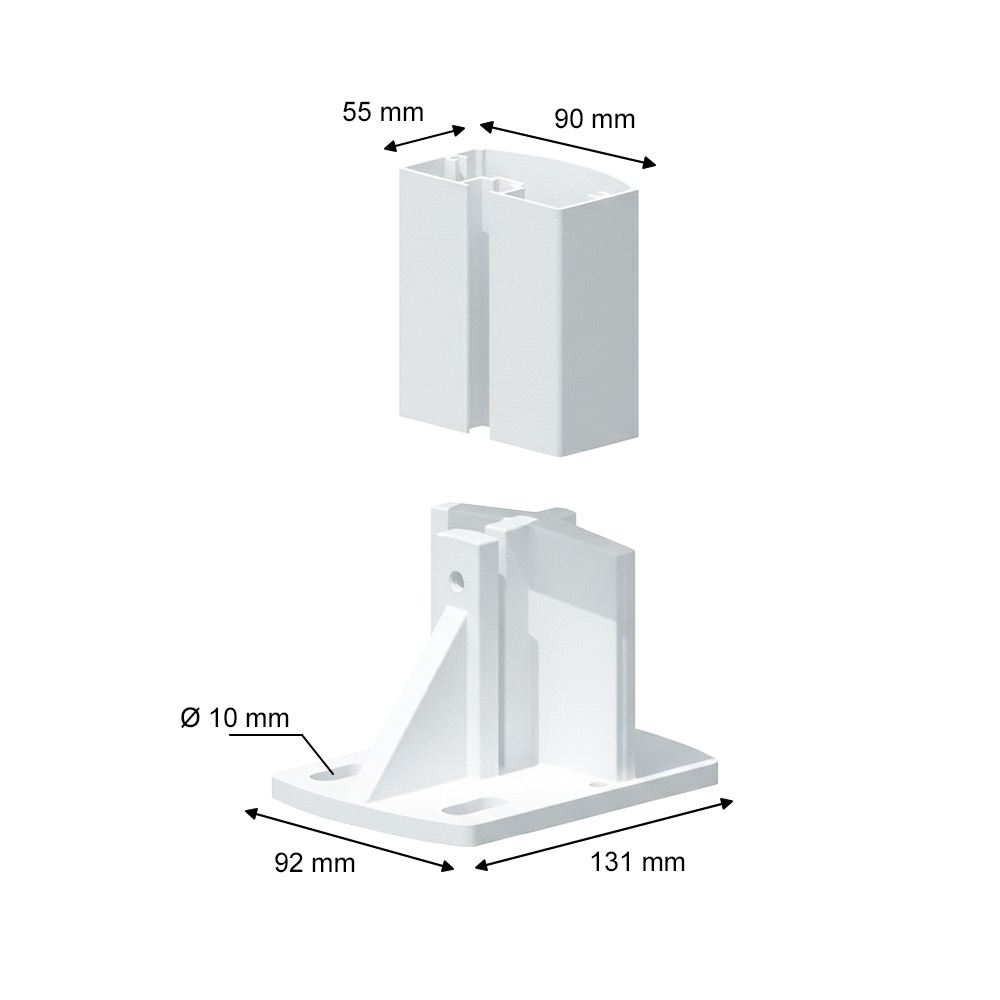 - Supports de fixation (inclus) : 2 platines de fixation façade/plafond + 2 platines de fixation au sol