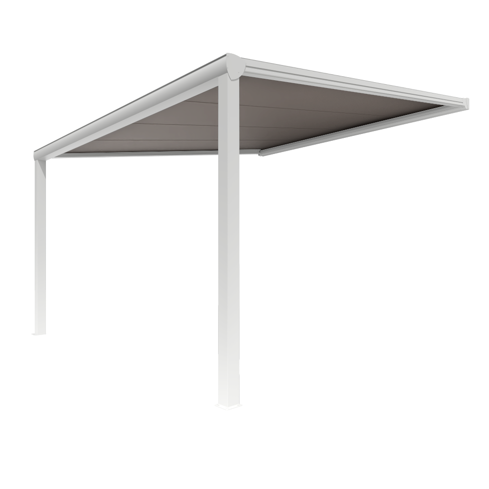 Son atout distinctif ? Sa conception modulaire unique qui permet d’associer deux modules avec un troisième poteau central, une alternative bien plus élégante et équilibrée que la pergola toile PYRITE, qui impose une installation côte à côte.