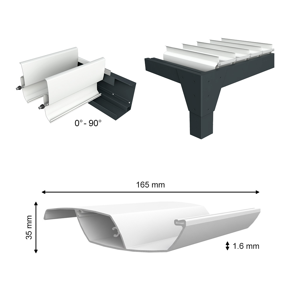 Coloris armature Gris anthracite RAL 7016 (armature) | Blanc RAL 9010 (lames)