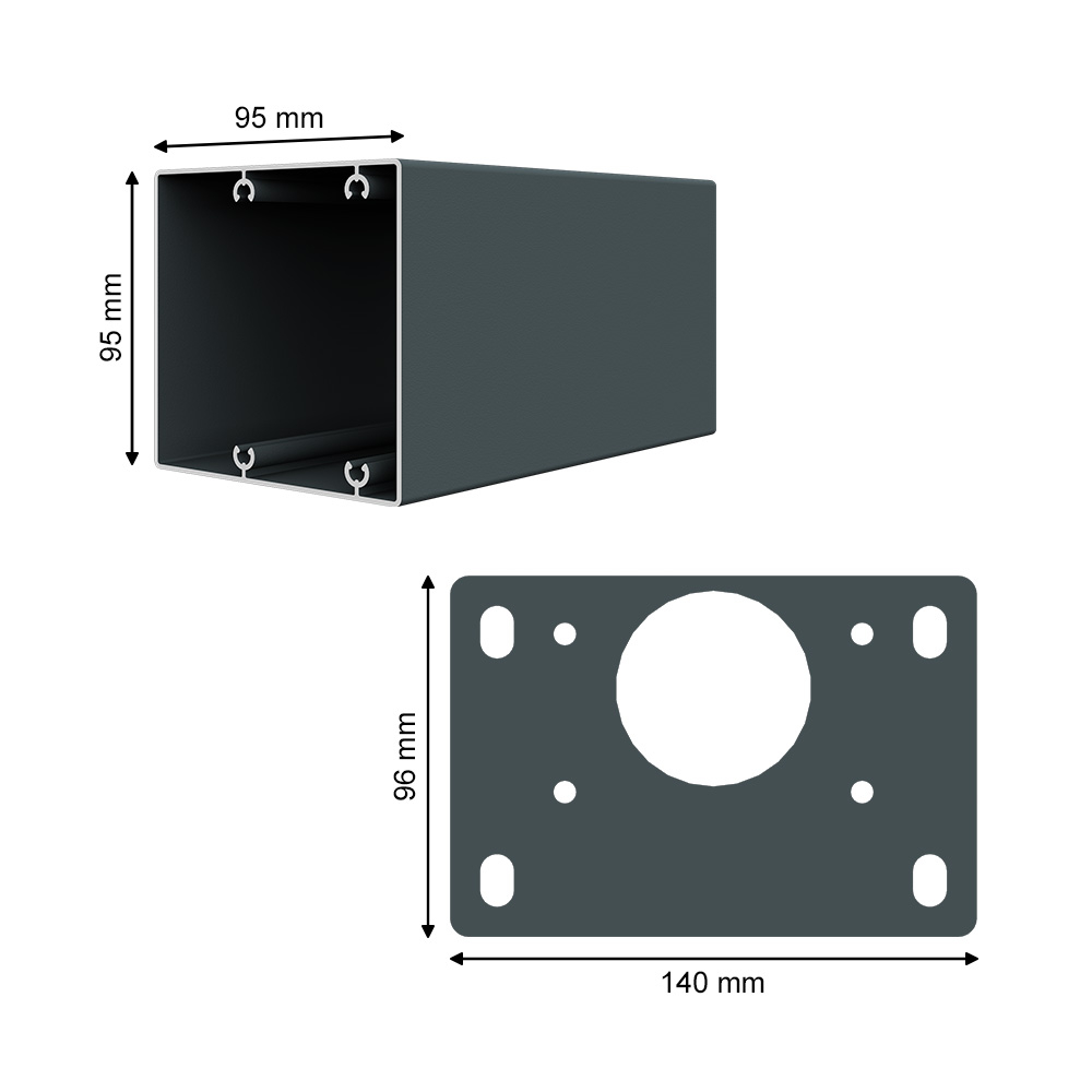 • Section poteau : 95 x 95 mm