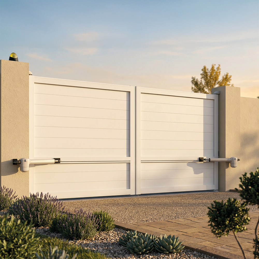 Moteur : Moteur à bras 230V (un bras moteur par battant), motoréducteur irréversible
