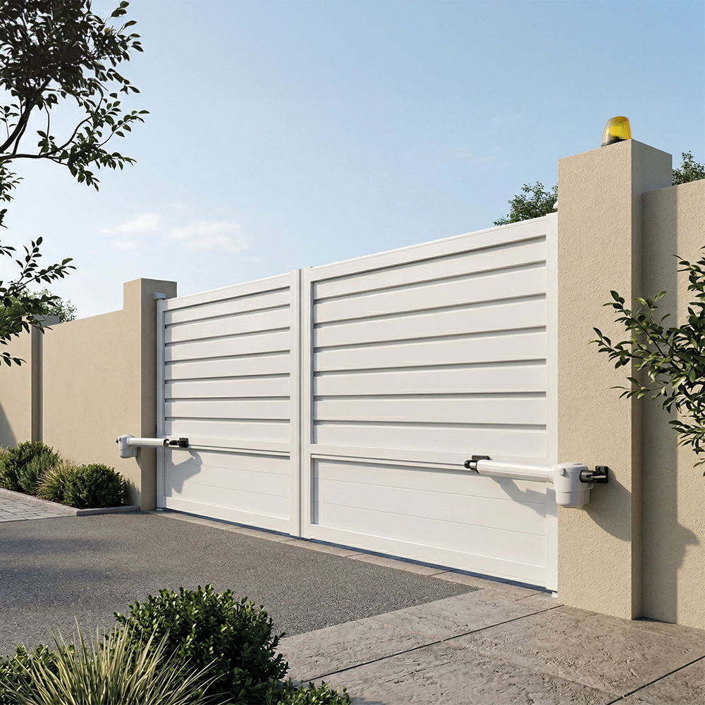 Le kit moteur fournit avec le portail est une motorisation à bras métalliques de haute qualité. Pratique, il intègre un système de déverrouillage avec clé sur les deux côtés du moteur. Ses engrenages en métal et sa technologie mécanique de pointe est résistante et performante sur la durée. Facile à installer, le kit moteur est livré avec tous les accessoires nécessaires et de sécurité, ainsi qu’avec une notice détaillée pour la programmation de celui-ci. Ce moteur n’inclut pas d’arrêt d’obstacle et supporte une charge maximale de 250 kg.