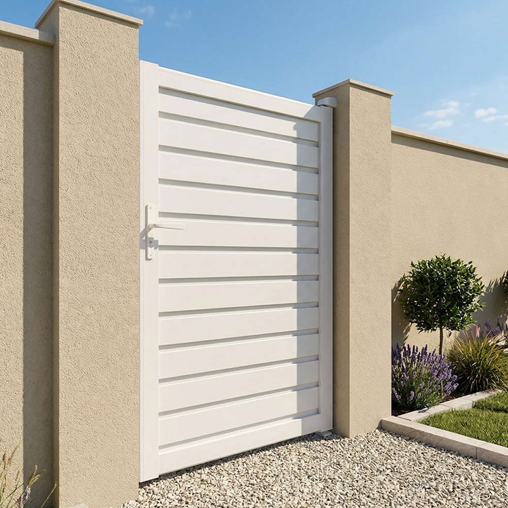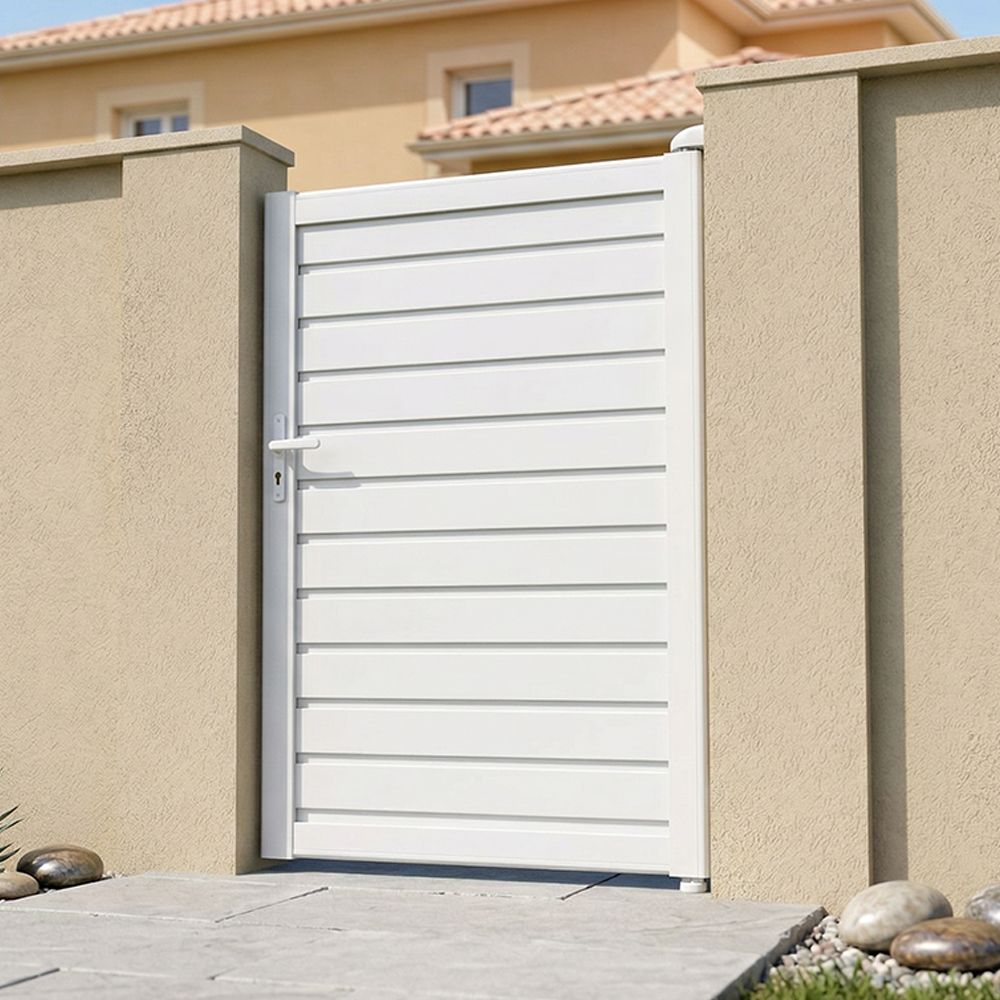 Portillon battant aluminium persienné brise-vue – kit complet prêt à poser, design moderne et fabrication française