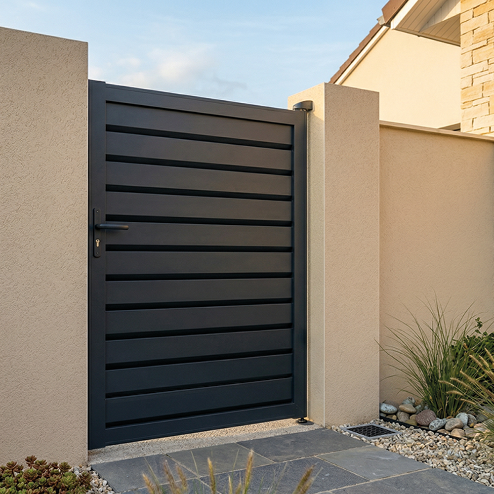 Portillon battant aluminium persienné brise-vue – kit complet prêt à poser, design moderne et fabrication française