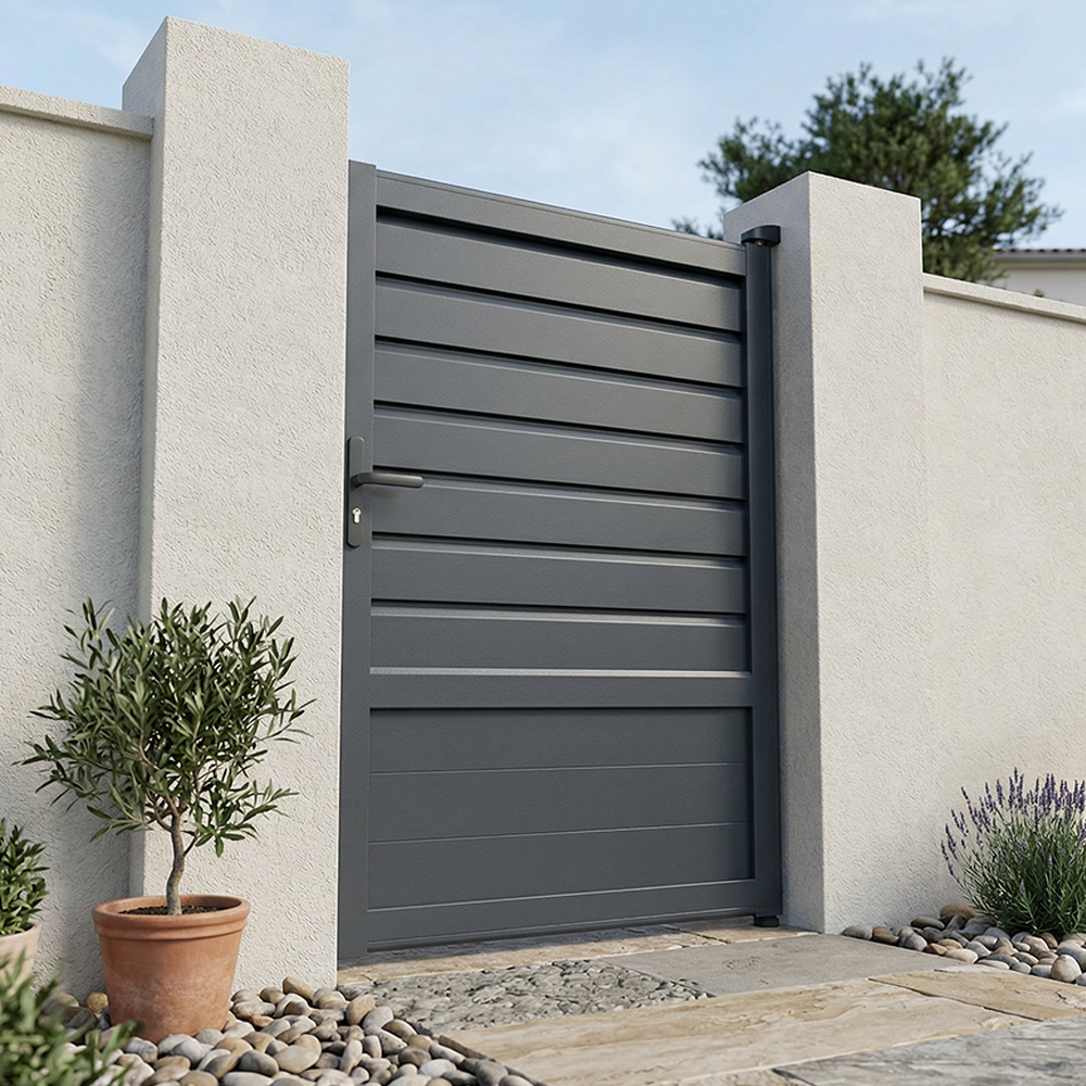 Portillon battant aluminium semi-plein persienné – kit complet prêt à poser, design moderne et fabrication française