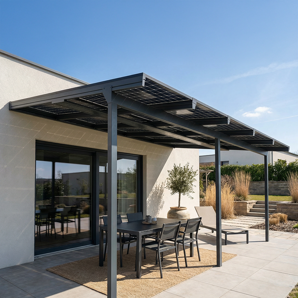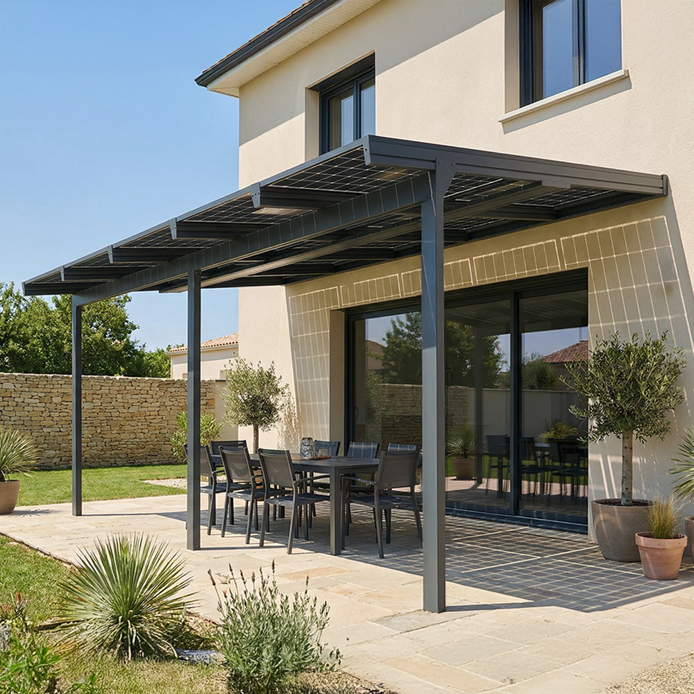 En plus de vous offrir un espace extérieur convivial et moderne, cette pergola raccordée au réseau électrique de votre maison vous permettra de réaliser des économies significatives sur votre facture d'électricité en transformant l'énergie solaire en électricité.