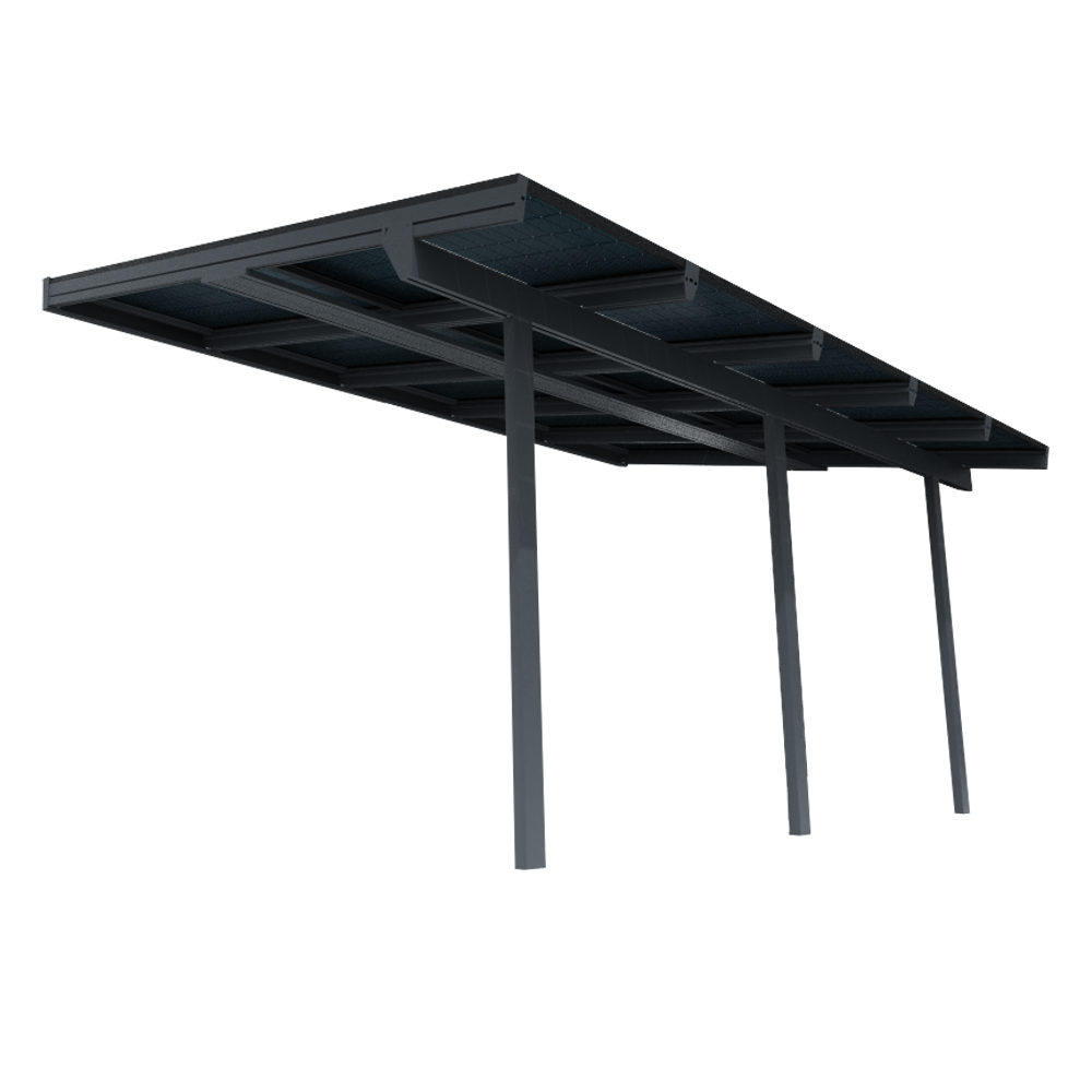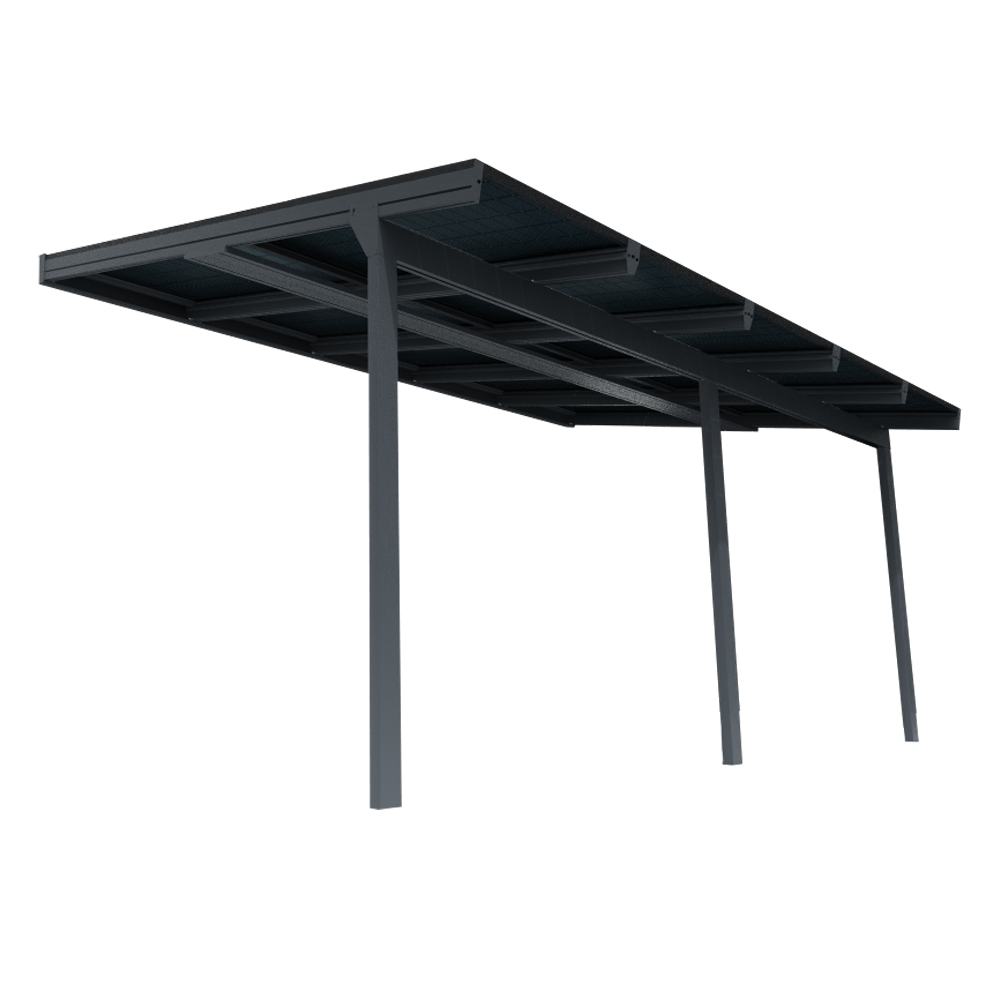 La pergola solaire CORNALINE, adossée à la façade et à toit incliné avec chemin de câble inclus :