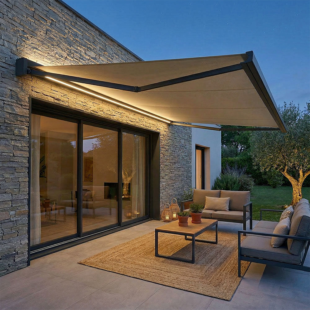 • Garantie : Armature et toile 5 ans | Motorisation 5 ans | Accessoires 2 ans